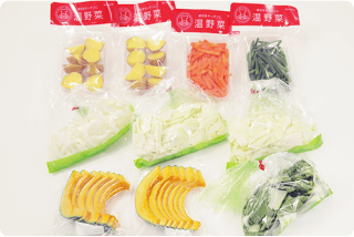 まず私がポイントとしてお伝えしたいのが、水洗いも皮むきも不要使いやすい豊富なかたちにカットし、下準備をして1種類ずつ個別包装。そのため生ごみも出ないためサステナブル。
