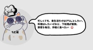 私も料理は好きなのですが、なかなか使いかけの野菜の消費するタイミングが合わなかったり時間がなくて作りたいものが作れなかったり、、